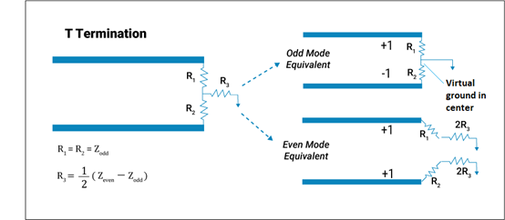 正確終止偶數(shù)和奇數(shù)模式傳輸:可以 使用三電阻網(wǎng)絡(luò)(T 終止)來(lái)終止奇數(shù)和偶數(shù)模式。