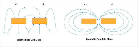 受害者線上的電磁場(chǎng)和侵略者線上的電磁場(chǎng)相互作用。反過(guò)來(lái),它們會(huì)影響在傳輸線上傳播的阻抗和信號(hào)。這兩條線可以稱為雙導(dǎo)體系統(tǒng),其中兩條單獨(dú)的跡線影響通過(guò)它們的信號(hào)傳播??梢钥紤]兩種傳播模式:偶模(兩條線同相)和奇模(線相差 180 度)。