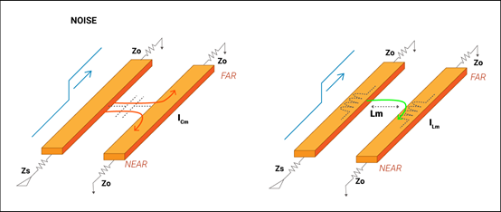 在受害線路的近端和遠(yuǎn)端感應(yīng)的電流會(huì)產(chǎn)生近端和遠(yuǎn)端噪聲。