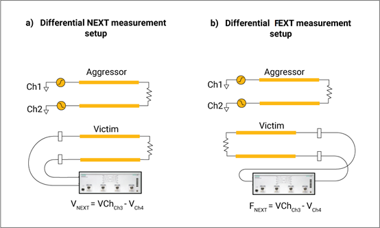 NEXT 和 FEXT 是根據(jù)施加激勵(lì)的端口測(cè)量的。它可以發(fā)生在線路的任何地方,無(wú)論是雙導(dǎo)體還是單端。
