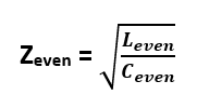 偶數(shù)模式的傳輸線阻抗由下式給出: