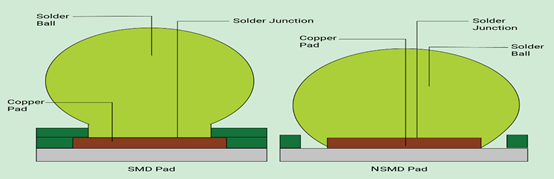 正確的焊盤設計對于確保BGA組件的可制造性至關重要。BGA焊盤基本上有兩種類型-阻焊層定義的焊盤(SMD)和非阻焊層定義的焊盤(NSMD)。