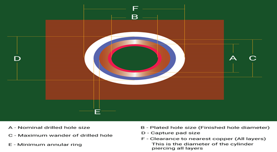 通孔焊盤的不同部分通常稱為焊盤堆疊,由以下部分組成: