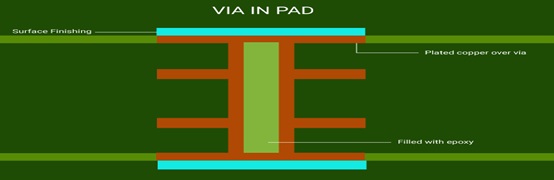 在HDI設計中,在空間受限的情況下,有必要在焊盤上放置過孔。 傳統的過孔具有從焊盤到走線的信號承載走線。焊盤內通孔可通過減少走線布線占用的空間來最小化PCB的尺寸。焊盤內通孔用于間距小于等于0.5 mm的BGA組件。