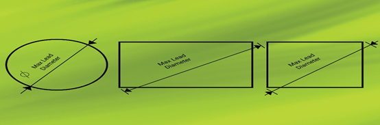 您需要找到組件的包裝圖或數據表中可用的最大引線直徑。下圖顯示了不同形狀類型的最大引線直徑: