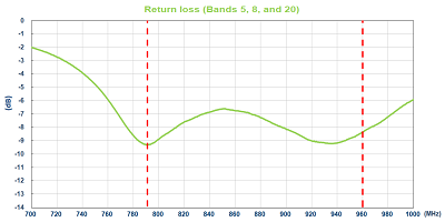 5820天線(xiàn)跨越3個(gè)NB-IoT頻帶的示例回波損耗頻譜