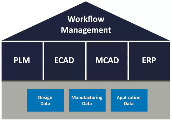 數字化轉型可以在本地或云端實施,這兩者都是電子開發團隊的自然步驟,它們是跨職能的且通常是分布式的。云平臺使任何利益相關者都可以從任何地方訪問產品數據,從而使數字化轉型更進一步。靈活的工作流管理平臺(本地或云部署)也是聚合和管理來自其他企業平臺的數據的自然場所,例如: