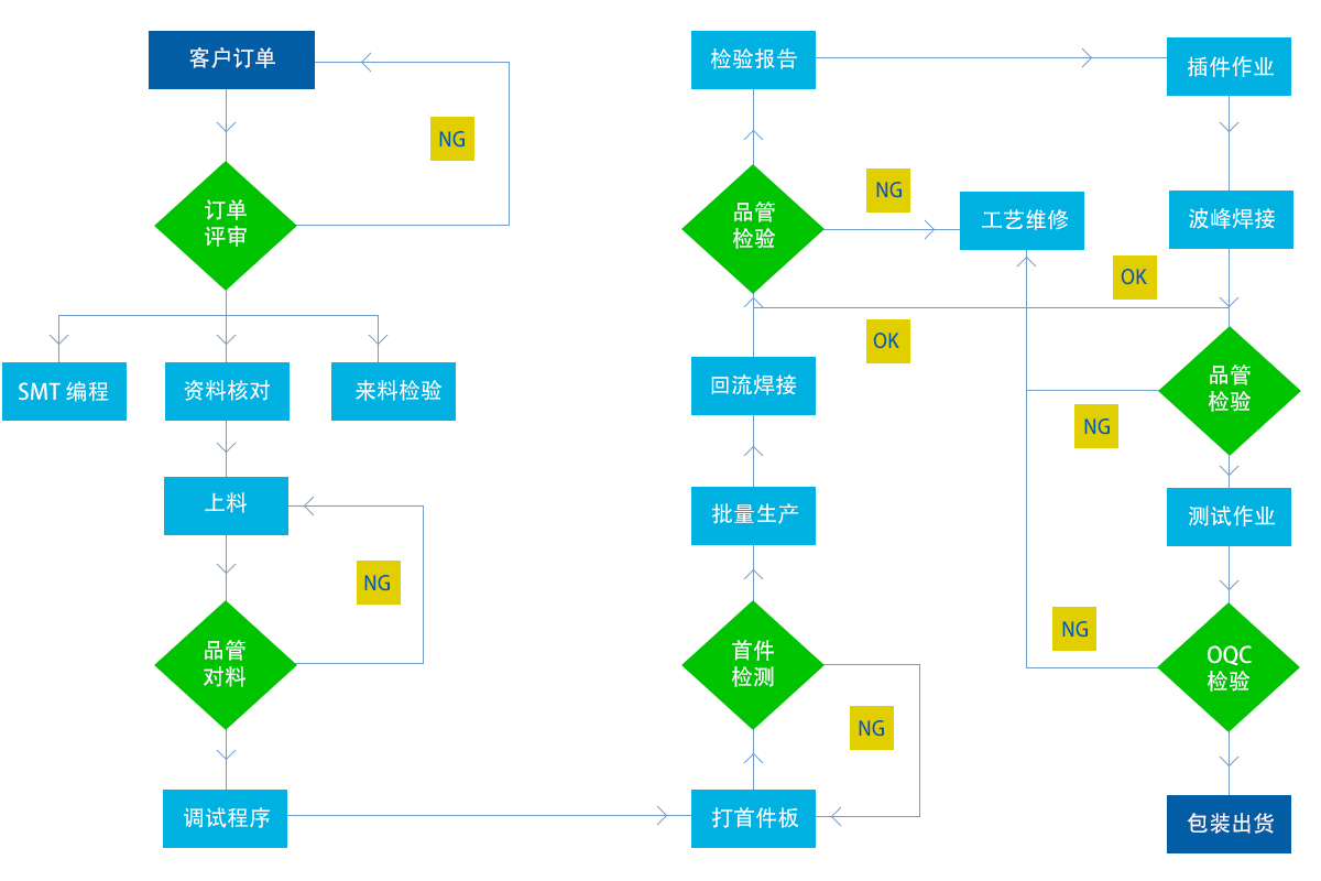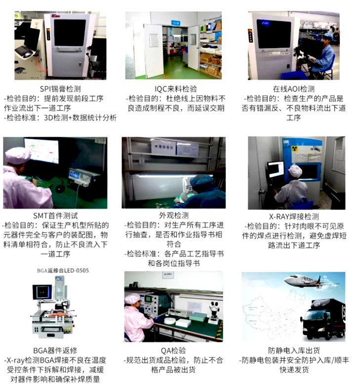 SMT貼片生產線4條,配備日本雅馬哈全自動貼片生產線、全自動錫膏印刷機、八溫區、十溫區回流爐、AOI、一體式貼片機等高端設備,芯片生產能力600萬焊接點/天,波峰焊加工日最大生產能力50萬點。具有安裝01005和0.40毫米間距BGA布局能力和電腦主板波峰焊接能力。